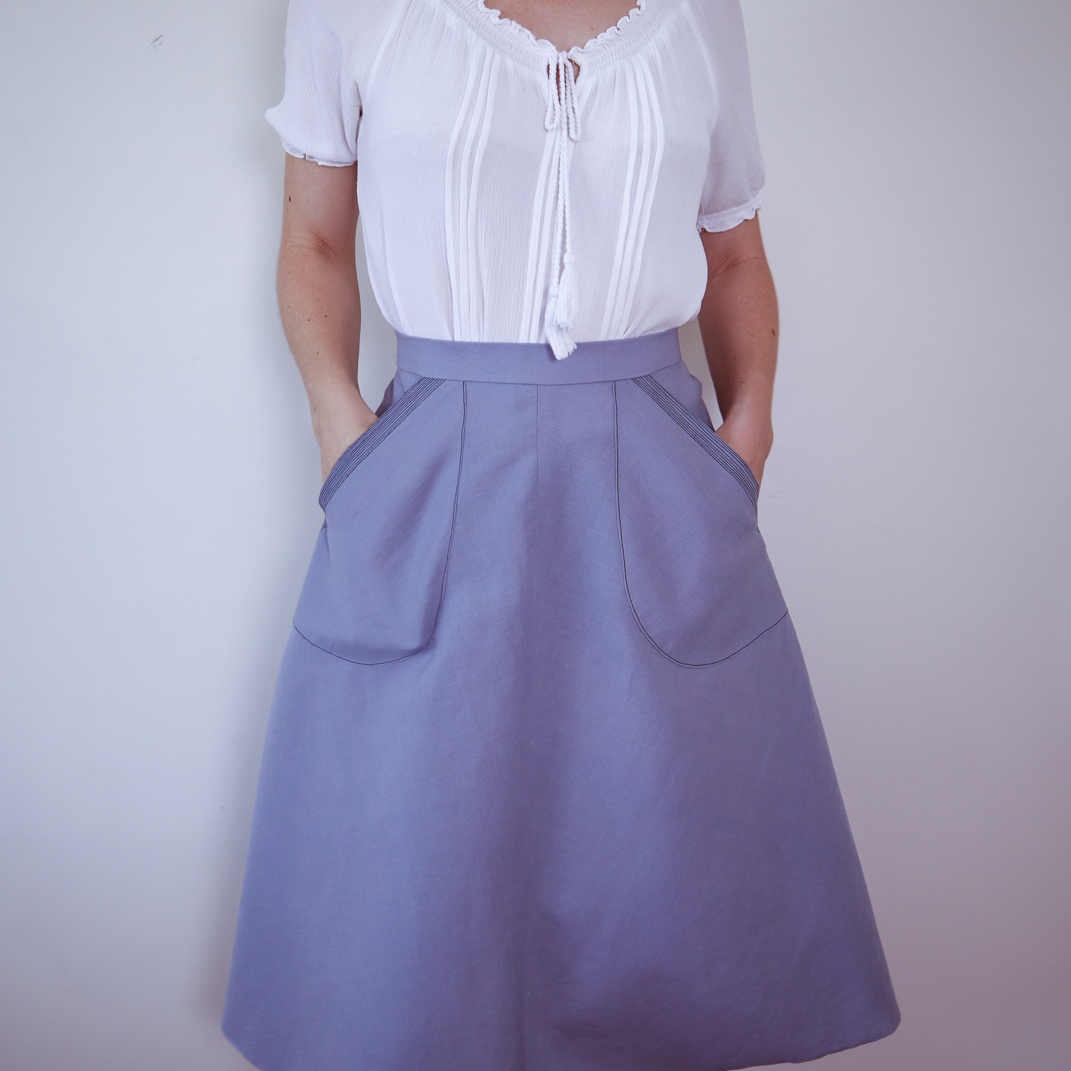 In this mini-workshop, create this Fit-all large patch pocket, but even better learn to pattern make and sew it yourself! So you can make it for any garment, in any size you want!